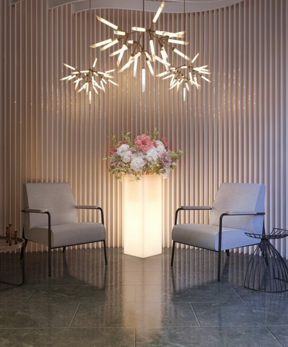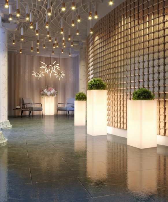Цена указана за кашпо в стандартной комплектации без крепления и дренажа, подсветка белая от сети (220V).